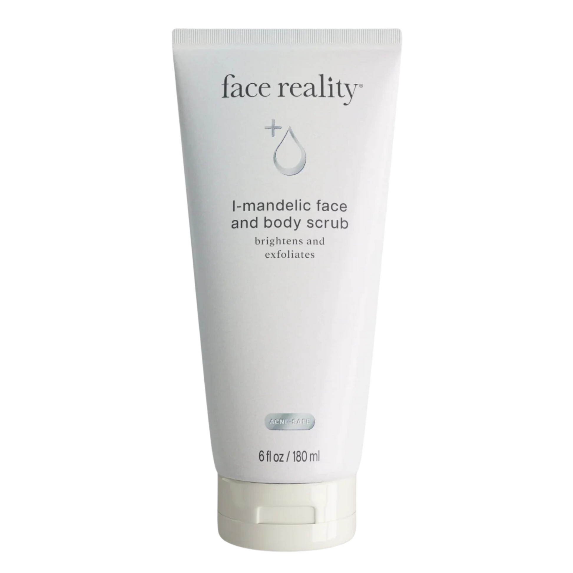 Face Reality Mandelic Face & Body Scrub is an exfoliating and brightening gel scrub cleanser that is effective at reducing hyperpigmentation, fungal folliculitis and keratosis pilaris.